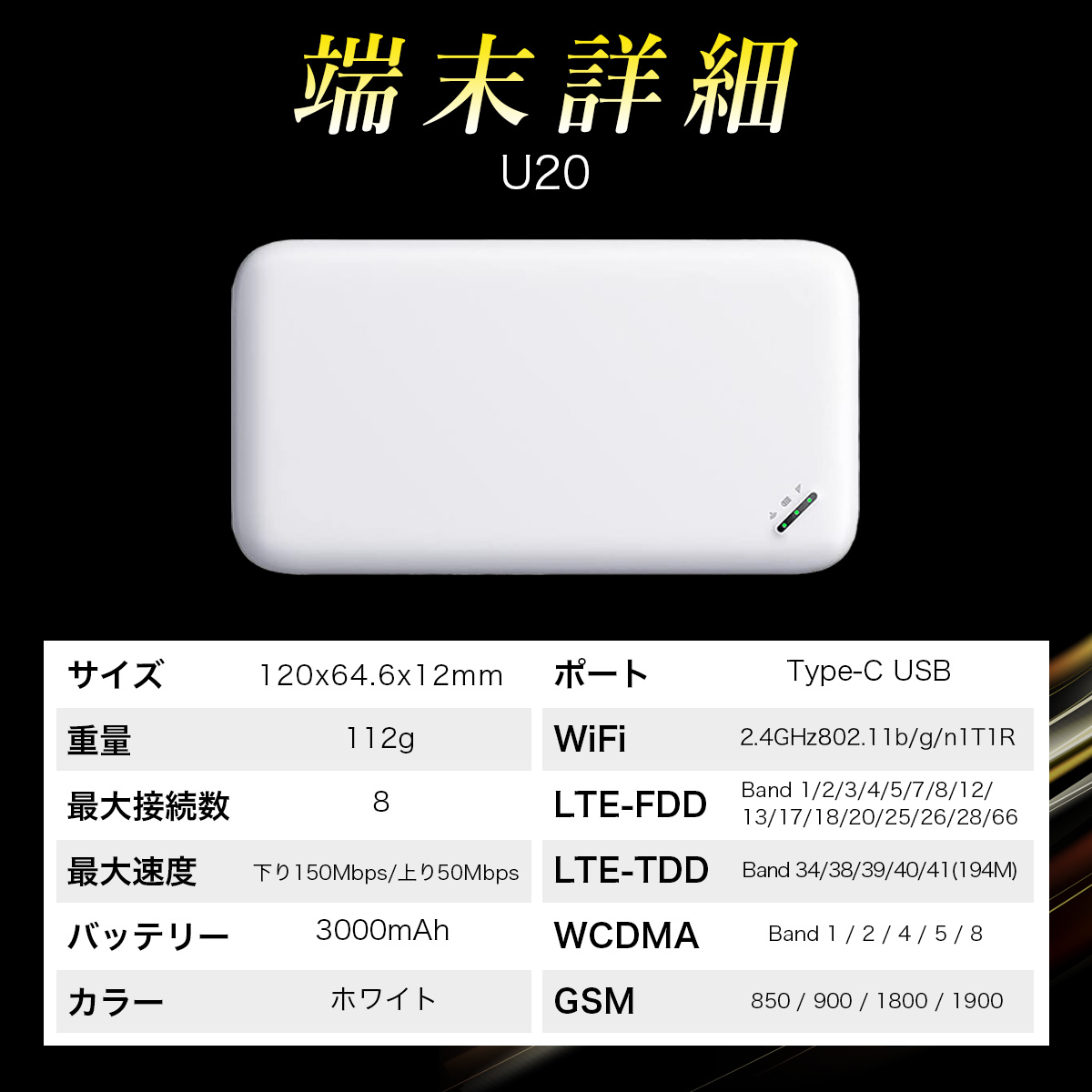 CHEETAH WiFi U20 チーターWiFi U20 【軽量・薄型モデル】