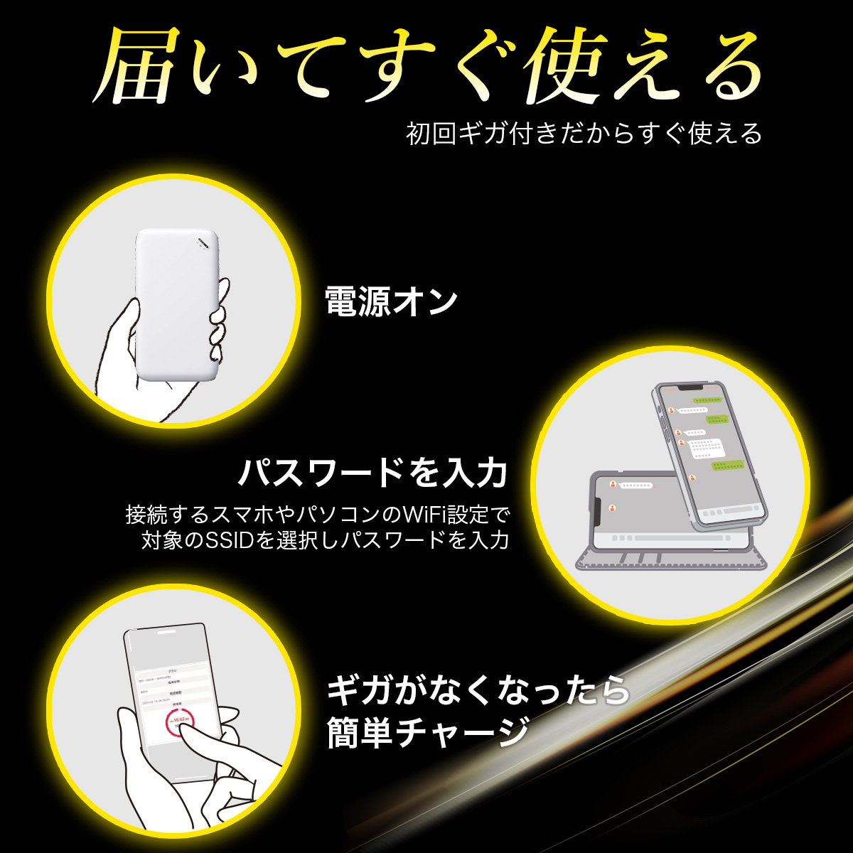 ■買い切り型なので契約や毎月の月額料金や端末返却も不要。ギガがなくなっても追加データご購入で何度でも使えます。